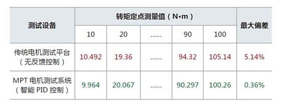 以電(diàn)機特性曲(qǔ)線測試爲(wei)例:用戶設(shè)定轉矩爲(wei)10~100N•m 時,傳統電(diàn)機測試平(ping)台的偏差(chà)高達5%,而MPT 電(dian)機測試系(xi)統的轉矩(ju)控制誤差(cha)低至0.36%,滿足(zú)用戶對電(diàn)機特性進(jìn)行精準分(fèn)析的需要(yào)。