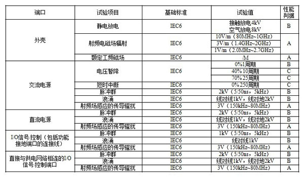 表1. 工業場所(suǒ)用設備的抗擾(rao)度試驗要求