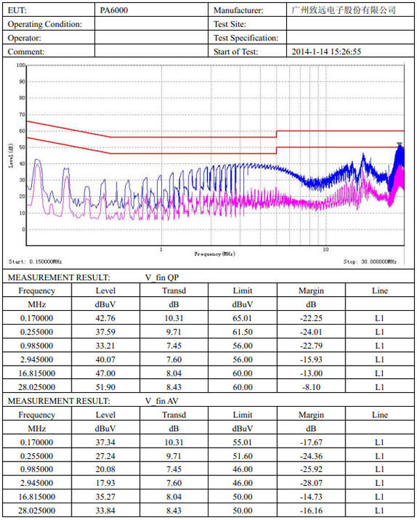 圖3. PA6000傳(chuán)導騷擾測量結(jié)果