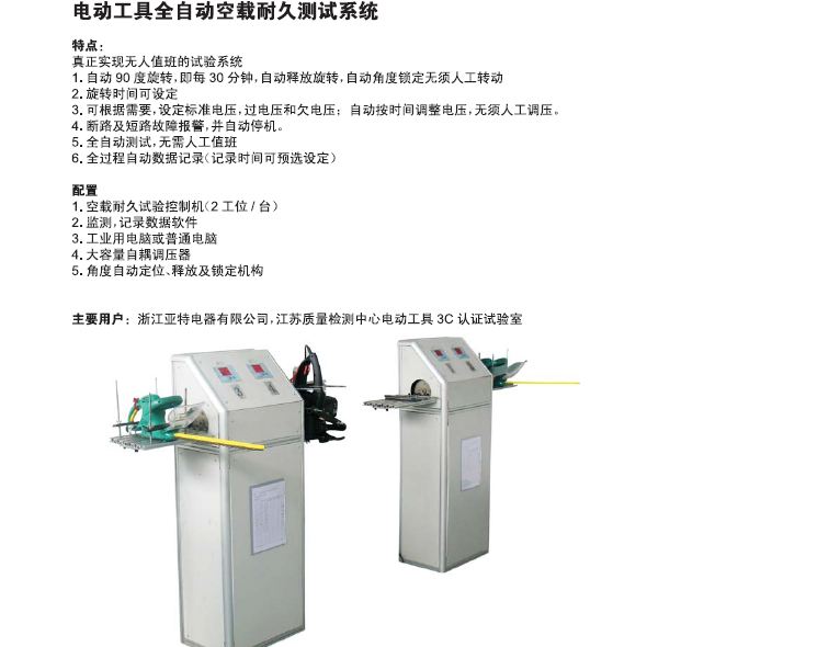您的位置: 産(chan)品與服務 >> 電(diàn)動工具全自(zì)動空載耐久(jiu)測試系統