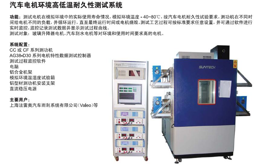 您(nín)的位置: 産(chan)品與服務(wù) >> 汽車電機(jī)環境高低(dī)溫耐久性(xìng)能測試系(xì)統