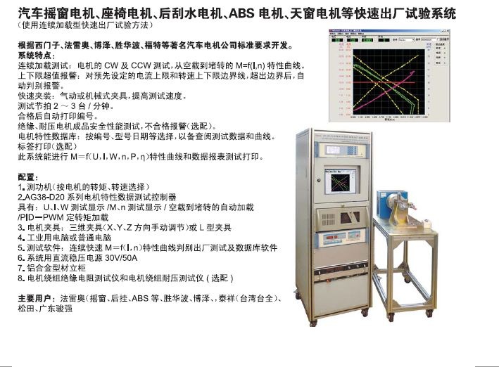 您的位置: 産品與(yu)服務 >> 汽車搖窗電(dian)機、座椅電機等快(kuài)速出廠試驗系統(tong)