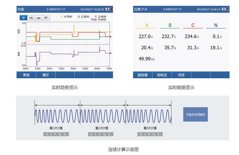 200ms刷(shua)新率、無間隙連續(xù)運算,實時顯示功(gong)率數據與趨勢