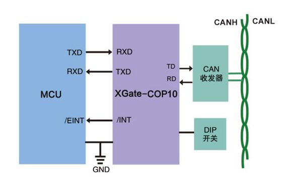 XGate-COP10通信模塊(kuài)是一款使用簡(jian)單方便的CANopen從站模塊(kuài),模塊内部已經(jing)固化了CANopen從站協議棧(zhan),使用緻遠電子(zi)的簡單串口通(tōng)信協議㊙️就❄️能實(shi)現與XGate-COP10的通信,如下圖(tú)所示: