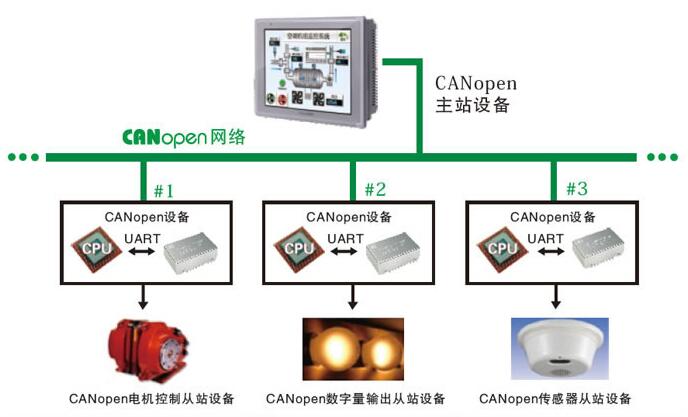 利用XGate-COP10設計(ji)的CANopen設備在網絡(luò)中的結構如下(xià)圖所示,通🙇♀️過CANopen主(zhu)站設⚽備可以輕(qīng)松的實現對各(gè)個CANopen從站的控制(zhi)。