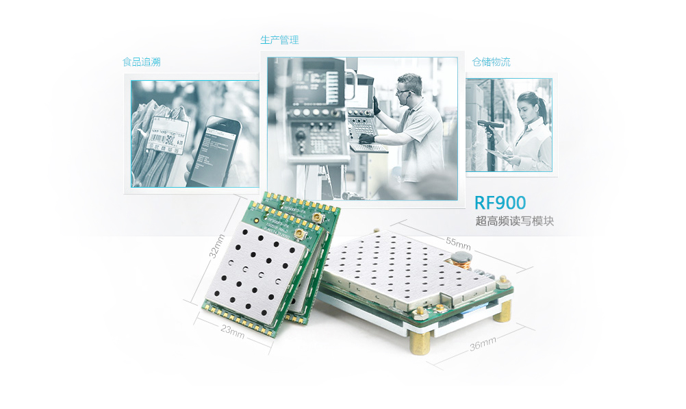 RF900系列模(mo)塊因其超小的體(tǐ)積且功能全面,在(zai)生産管理、倉儲物(wù)流☎️及資産管理、食(shí)品溯源等系統中(zhong)得到廣泛應用。
