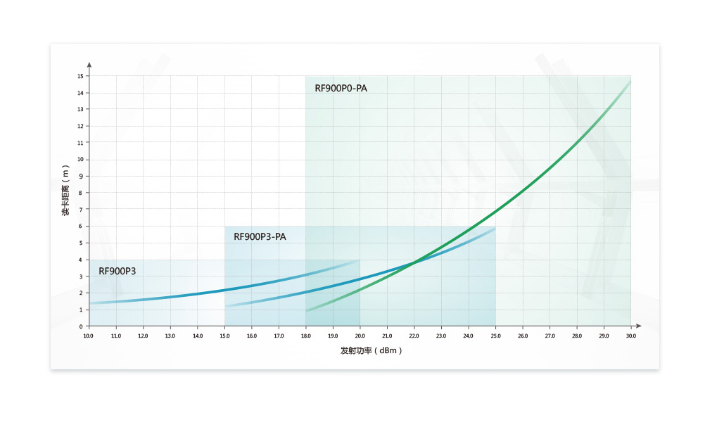 RF900系列模塊的發(fā)射功率多級(30級)可(ke)調,用戶可根據發(fa)射功率調⁉️整讀卡(kǎ)距離,以滿足不同(tóng)應用環境中的📞需(xū)求,最大讀卡距離(li)超過10m。