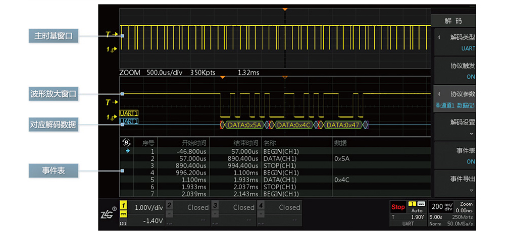 ZDS2024 Plus示波器史(shǐ)無前例地免(miǎn)費配備了25種協(xié)議解碼,CAN、LIN、I2C、SPI、UART、USB、PS/2、DALI、Wiegand、1-Wire、DS18B20、HDQ、 SD_SPI、SD_SD、IrDA、Manchester、DiffManche、Miller、DHT11、 SHT11、 NEC、RC5、RC6、FlexRay,除(chú)此之外,ZDS2024 Plus還全球(qiú)獨家免費配(pei)備了CAN FD協議解碼(ma),真正再一次(cì)定義了200M示波器(qì)!