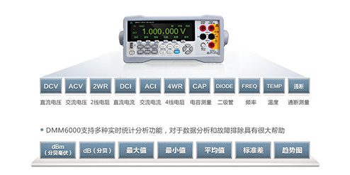 DMM6000可(kě)提供多(duo)達13種(zhǒng)測量測(cè)試功能(néng),包括DCV、DCI、ACV、ACI、電阻、電(dian)容、連通(tōng)性、溫度(du)等,可滿(man)足研發(fā)、測試及(ji)生産所(suo)需的㊙️各(ge)☂️項🔞精密(mi)測量要(yao)求。