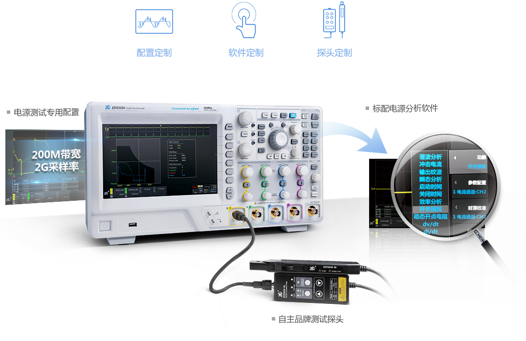 示波器(qi)作爲通用(yòng)測試儀器(qì),産品設計(jì)必須平衡(heng)不同行業(ye)的需求。電(dian)源測試以(yǐ)模拟信号(hao)爲主,很少(shao)測數字🌐信(xin)号。爲了解(jiě)決💁通用👈示(shì)波器測量(liang)電源資源(yuán)冗餘的問(wèn)題,我們爲(wei)電源工程(cheng)師量身定(ding)制了電源(yuan)測試專用(yòng)版示波器(qì),将電源行(háng)業最常用(yòng)的200M帶寬、2G采(cǎi)樣率基于(yú)最優成本(ben)和行業🔱需(xu)求優化至(zhì)極緻。