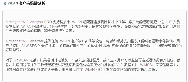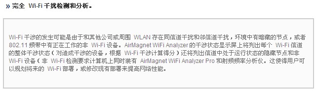 AirMagnet WiFi Analyzer 是一款(kuǎn)用于移動審(shen)計和解決企(qǐ)業級 Wi-Fi 網絡問(wen)題的行🏃🏻業标(biāo)準工🐕具。AirMagnet WiFi Analyzer 可以(yi)幫助 IT 工作人(rén)員快速解決(jue)終端用戶遇(yù)到的問題,并(bing)自動探測安(an)全威脅和無(wú)線網絡漏洞(dong)。本解決方案(an)可讓網絡管(guan)理人員輕松(sōng)測試和診斷(duan)各種常見的(de)無線網絡性(xìng)能問題,包括(kuò)流量問題、連(lian)接問🈲題、設備(bei)沖突🔴和信号(hao)多徑傳輸問(wen)題。AirMagnet WiFi Analyzer 包㊙️括一個(gè)完全合㊙️規報(bào)告引擎,能夠(gou)自動将收集(jí)的網絡信息(xi),與政策和行(hang)業法規合規(guī)要求對應起(qǐ)來。