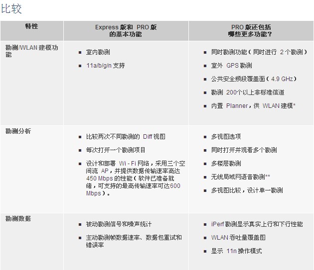 AirMagnet Survey 包(bāo)括 “Express” 和 “Pro” 兩款(kuan)産品。AirMagnet Survey Express 提供(gong)簡化的解(jiě)決方案版(bǎn)本,允許用(yòng)戶🚩執🙇♀️行♻️基(ji)本的 Wi-Fi 站點(dian)勘測功能(néng),并顯示有(yǒu)關信号、信(xin)噪,甚至用(yong)戶性能的(de)視🔞圖。AirMagnet Survey Pro 提供(gong) Express 版本的所(suo)有功能,并(bing)添加了業(ye)界領先的(de)強大功能(neng),其中包括(kuo)其中包括(kuo) 802.11n 部署、多樓(lóu)層部署、室(shi)外勘測、網(wǎng)絡設計驗(yàn)證、語音♉就(jiù)緒驗證和(hé)勘測、射頻(pin)頻🧑🏽🤝🧑🏻譜分析(xi)等等。