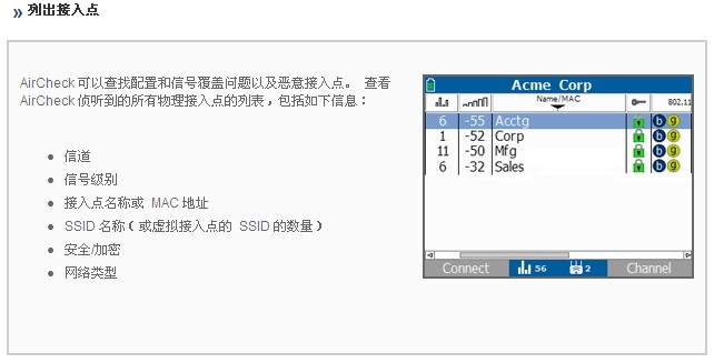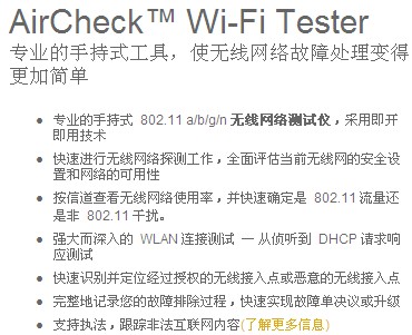作爲一款專門(men)用于幫助一線人(rén)員進行故障處理(li)的工具,AirCheck 通過以下(xià)方面來簡化無線(xiàn)網絡的測試過程(chéng):