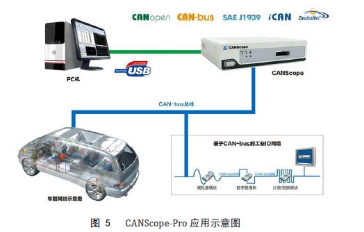 CANScope-Pro應用(yong)在汽車電子網(wang)絡或者工業自(zi)動化網絡中如(ru)🈚下圖所示。