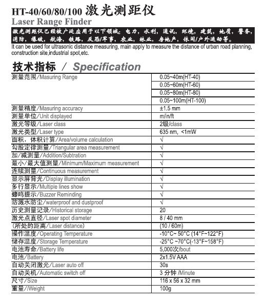您(nin)的位置: 産(chǎn)品與服務(wù) >> HT-40/60/80/100 激光測距(jù)儀