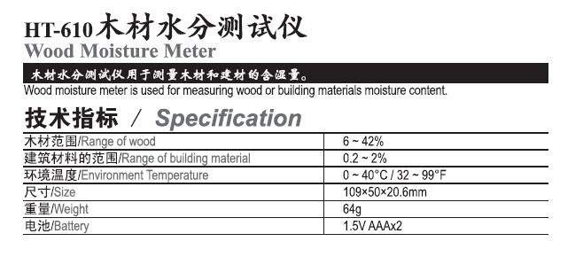 您的位置: 産(chan)品與服務 >> HT-610木(mù)材水分測試(shi)儀