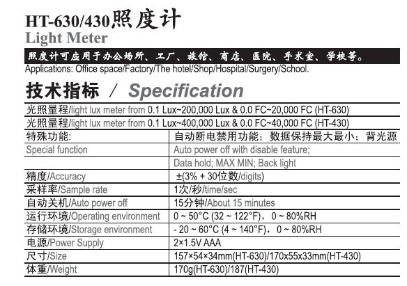 您的位置: 産(chan)品與服務 >> HT-630/640照(zhào)度計